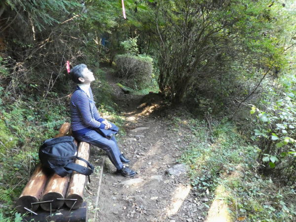 いきを切らせてやっと登りきると、先にひろい休憩所がある。 |