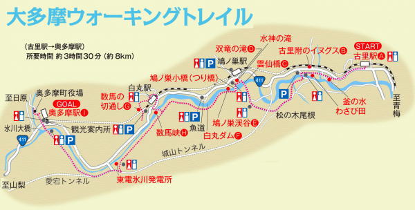 古里駅~鳩ノ巣渓谷3.2㌔ 鳩ノ巣~奥多摩駅5.1㌔ |