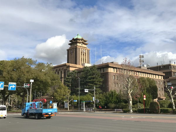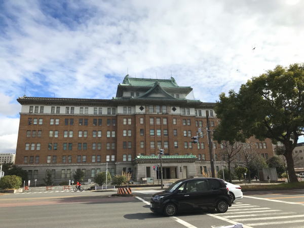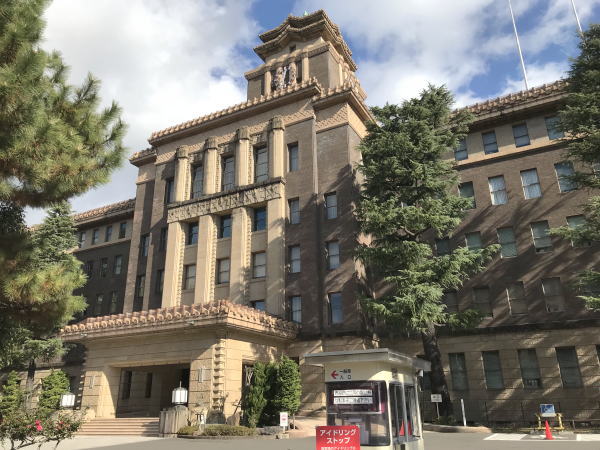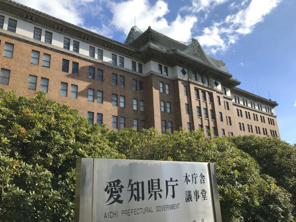 久屋大通公園を出て高速道路下を抜けた先に、愛知県庁と名古屋市役所の巨大な建物が現れる。 まず、「愛知県庁」テレビで度々登場する大村知事の執務する場所だ。 |