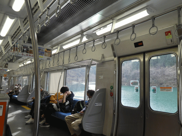 ガラガラだった「チャギントン・ラッピング列車」だが途中から乗客が増え、14:45分美濃太田駅に着くころは満員電車になったいた。 |