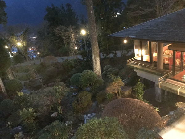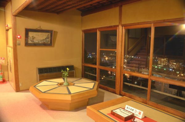 夕食後に館内散策。高台に建つ宿なので、三階の展望室からは下呂の夜景がきれい。 |