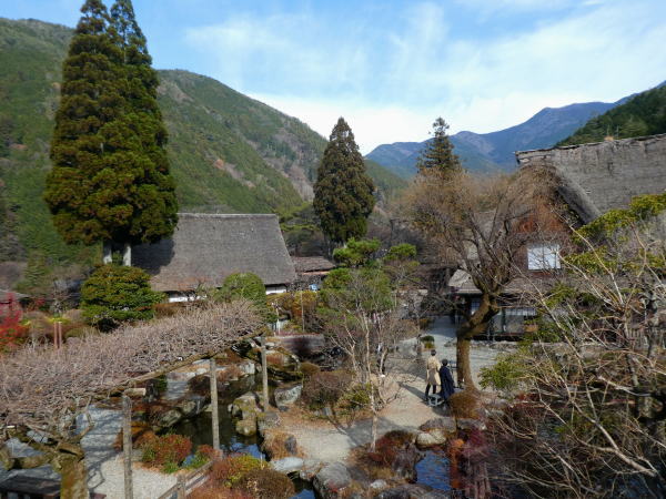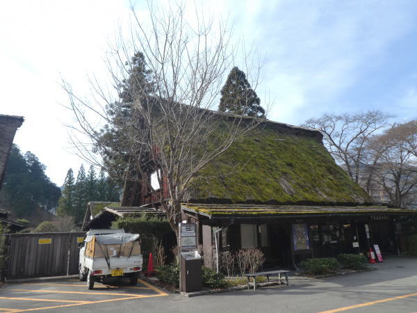 「雨情公園」から更に坂道を登っていくと「下呂温泉・合掌村」の建物群。 |