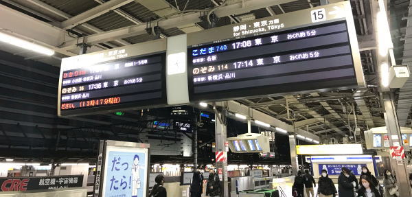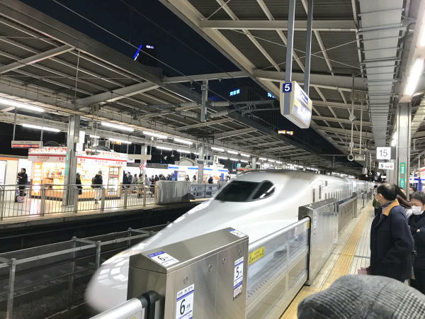 ![]() のぞみ114号名古屋発17:14は雪で遅れて発車 |