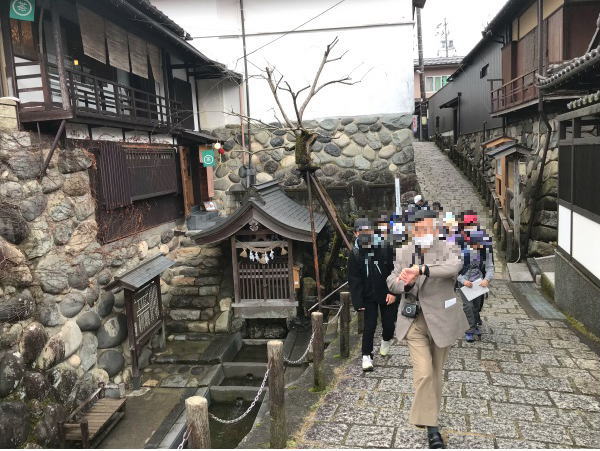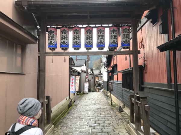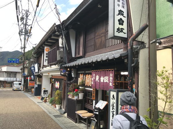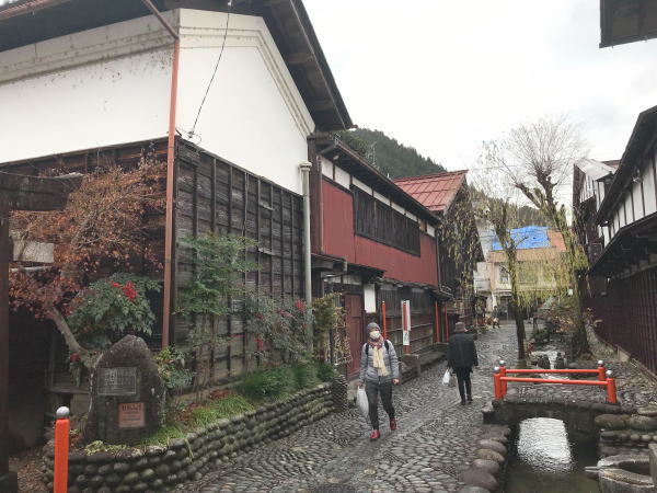 合掌村から坂道を下って温泉街に戻ってくる。 |