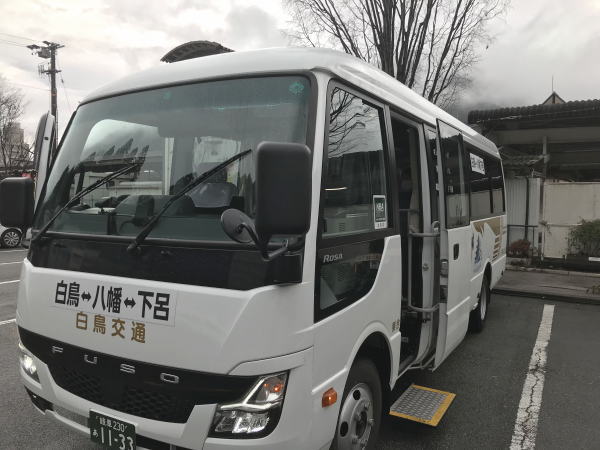 出発前に見つけて予約しておいた「下呂~郡上八幡」無料バスで郡上八幡へむかう。 |