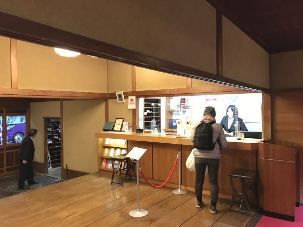 フロント横の囲炉裏の部屋で待つ。15:00に部屋まで案内される。 |