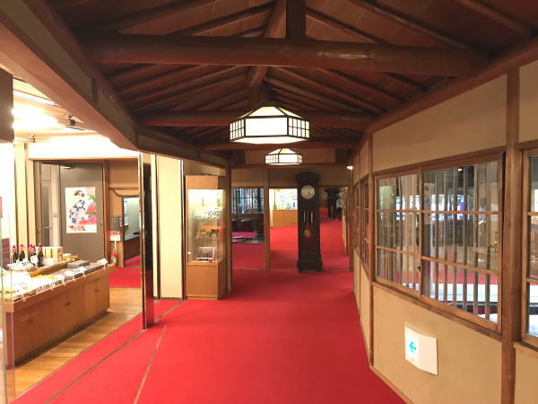 館内は事前に見ていた通り迷路のような赤じゅうたんの廊下が部屋まで続いている。 |