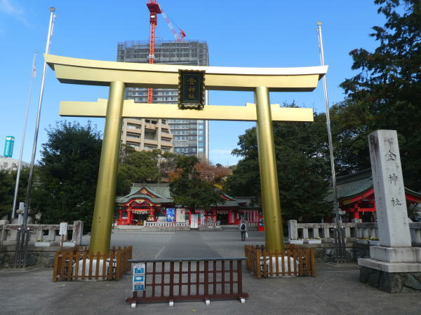 「柳ヶ瀬商店街」手前に、派手な黄金の鳥居の金神社(こがねじんじゃ)がある。近隣で名高いパワースポットで、月の最終金曜日、プレミアムフライデーに授与される金文字の御朱印を求めその日は長蛇の列がでるらしい。 |