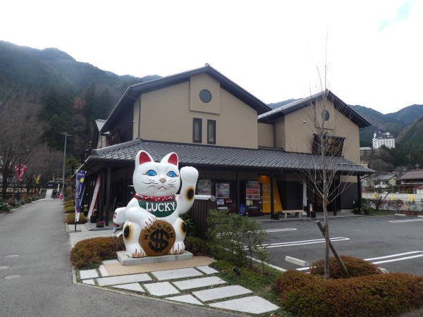 下呂大橋を渡り駅へ戻る途中の、土産物店ヤマカワ/青い目の招き猫(ジェームズ五郎平Jr)が可愛い。 |