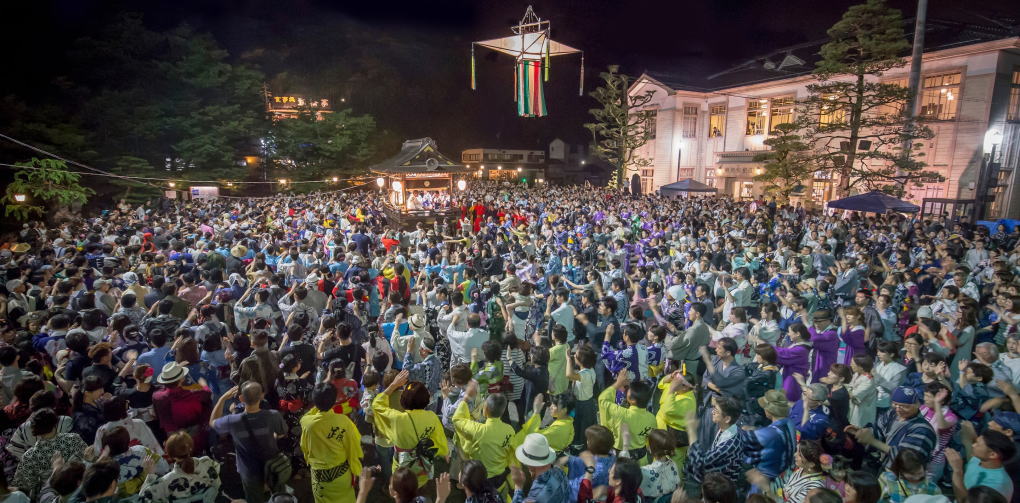 「郡上おどり」は毎年7月中旬から9月上旬までの期間、31夜開催される日本で最長期間の盆踊りで旧盆13日~16日は4夜連続の徹夜おどり(20時~翌日明け方まで)が行われ、期間中20万人が踊る、「徳島・阿波踊り」と「秋田・西馬音内盆踊」とともに、日本三大盆踊りに数えられている。 |