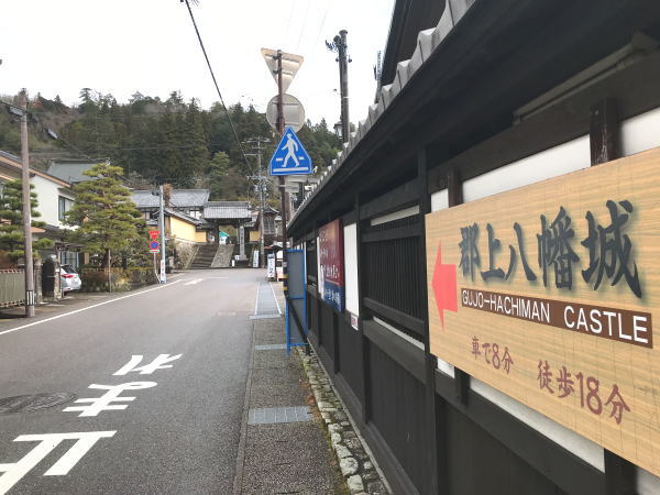 道すがら、今日は時間がなく行けなかったが、山の上の郡上八幡城がそびえている姿が見える。諸説あるが、郡上八幡城は、山之内一豊の妻=千代の生まれた城という有力な説の根拠は郡上の慈恩寺に伝わる遠藤氏の家系図にその名が記載されていたという。 |