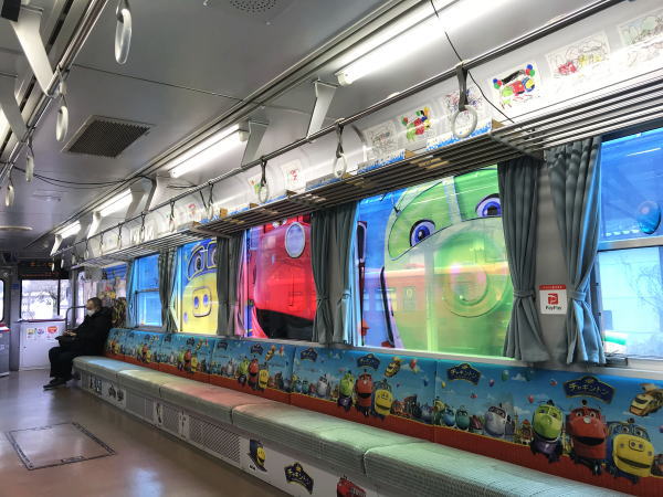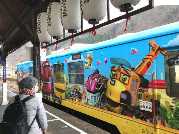 13:25分発の電車が到着。やってきたのはど派手な車体の「チャギントン・ラッピング列車」 |