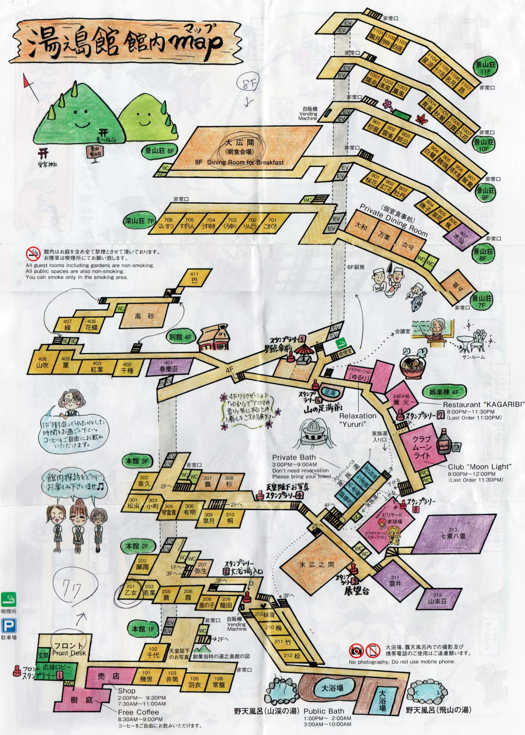 | 2つの大浴場にそれぞれ「山渓之湯」「飛山之湯」の展望露天風呂が隣接 | ||||||||||||||||||||||||||||||||||||||||||||||||||||||