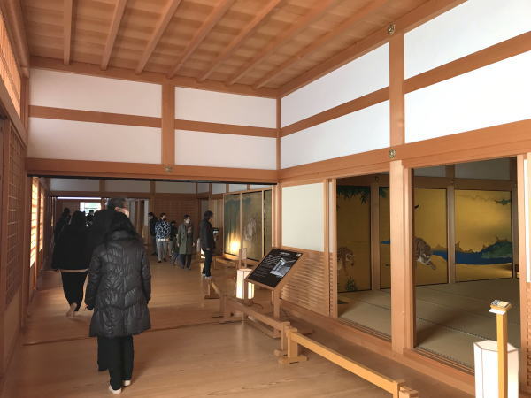 名古屋城.本丸御殿、クロークで靴と荷物を預け順路を整然と進み見学 |