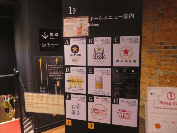 予約の際「70代の夫婦で初めてビール園に行きます、できれば落ち着いて食事できる席をお願いします」とリクエストしていたので奥の壁際の席に案内された。