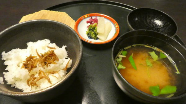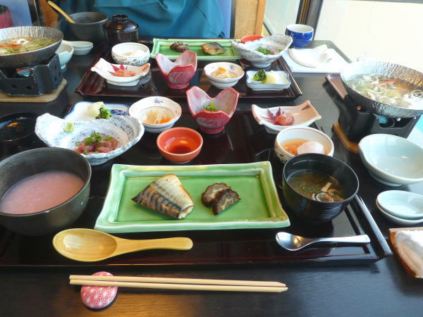7:30~朝食は昨夜と同じ2階のレストラン磯風で。窓に面したいい席について、なかでもサービスメニューの「紀州うめ雑炊」が美味しかった。