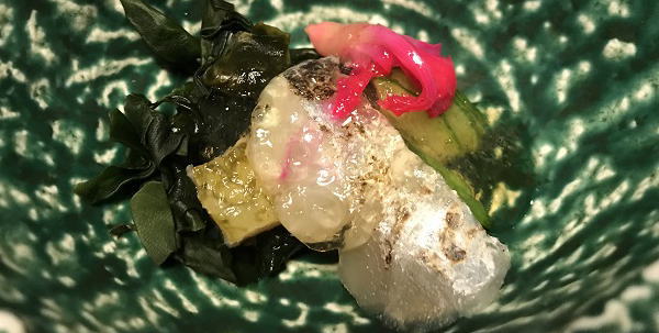 料理はクエの白良鍋、お造り。