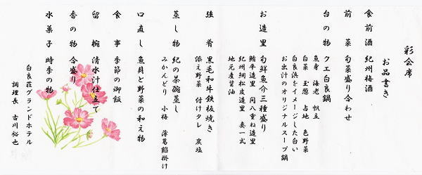 食前酒は紀州梅酒、11品の料理はどれも新鮮な素材と味付けで最高に美味しい。
