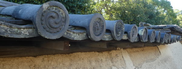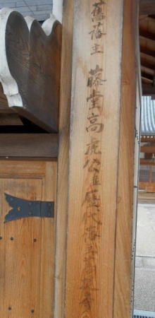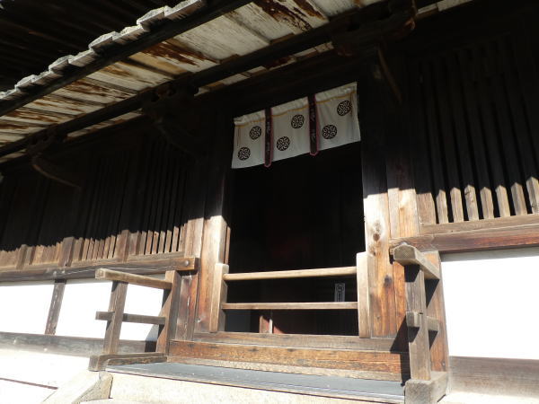 回廊は梁が渡されている長さは幅3.7㍍ルで、外側の柱と柱は出入り口を除いてすべて連子窓で閉ざしている。