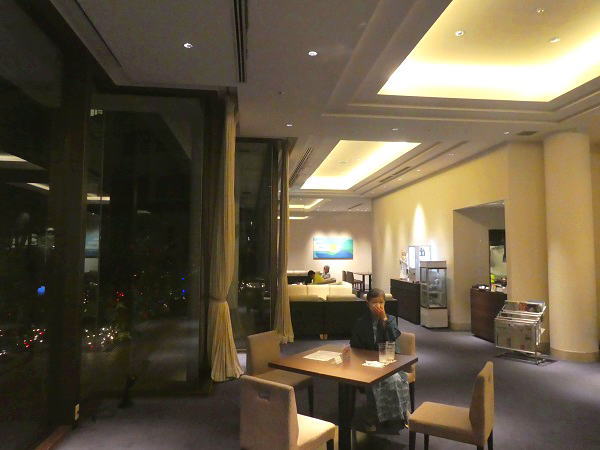 食後に一階ロビーで二日分のウェルカムドリンクサービスを利用して、さっぽろ生ビール2杯を飲んだ後、スパーリングワイン&カフェオレをテイクアウトして部屋に持ち帰る。