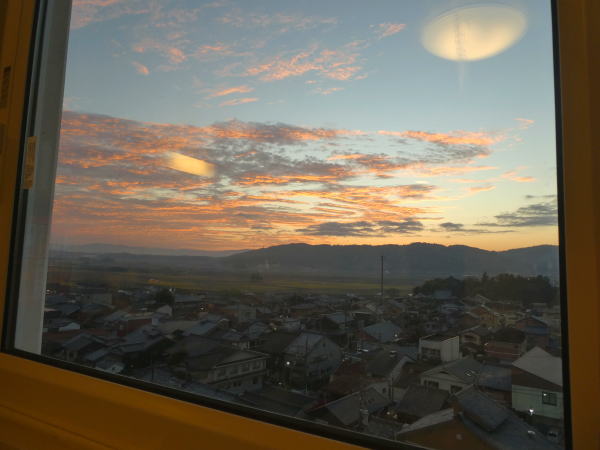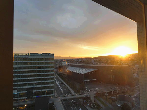 部屋から西側の市街向こうに夕陽が沈み綺麗。