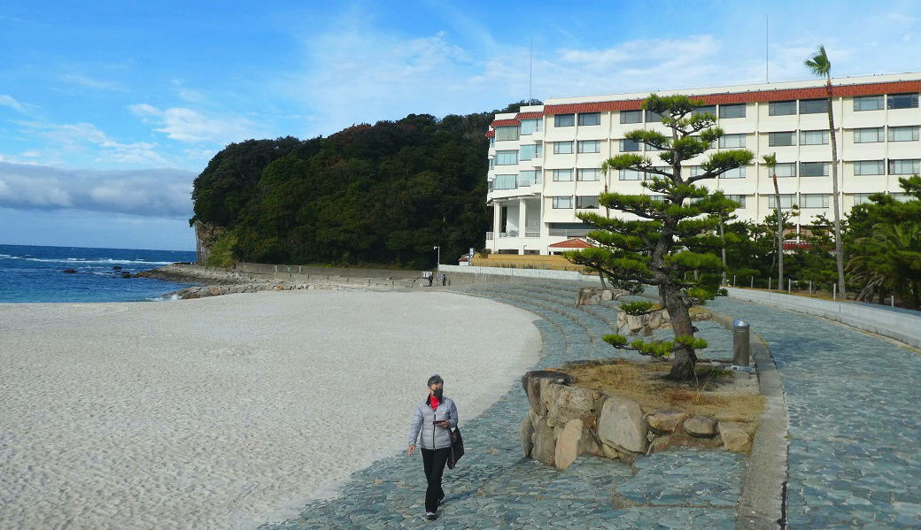 9:30分 いい天気なので、白浜一帯を散歩する。一階ロビーから白浜海岸へ出て歩く。