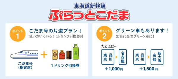 「ぷらっとこだま」新大阪~東京kioskでワンドリンク付 \10800X2