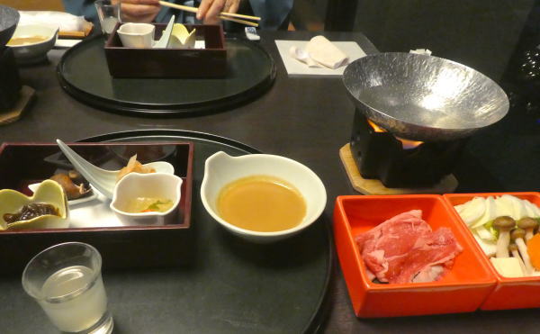 柚子酒、旬菜盛り合わせ、国産牛しゃぶしゃ鍋。