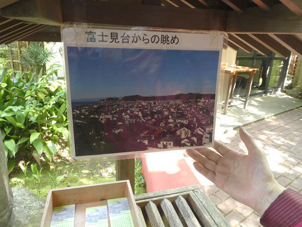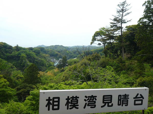半僧坊の社殿前"相模湾見晴台"しかし春の霞空で海がはっきり見えない。 |