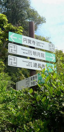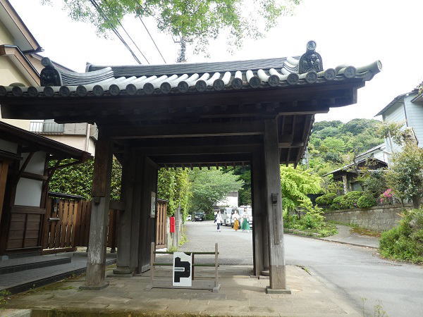 横須賀線路沿いを進むと、左に円覚寺、明月院入口を眺めながら通過して、ハイキングコース入口のある建長寺へ。 |