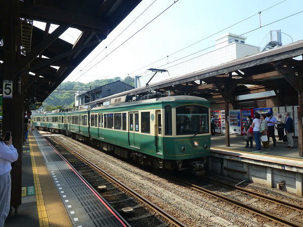 光則寺を出て長谷駅へ。長谷寺は坂東札所で、お参りしてるの立ち寄らず、江ノ電長谷駅から江の島へ向かう。 |