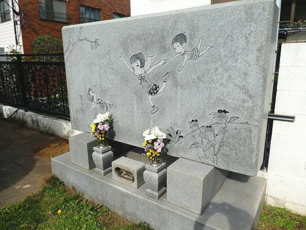 | 大東亜戦争末期の昭和20年(1945)3月4日、午前9時30分、東京都豊島区巣鴨5丁目45番地の防空壕に直撃弾が投下され、伊藤淑子ちゃん(9歳)、登美子ちゃん(5歳)、恵美子ちゃん(2歳)の3人の幼い生命が一瞬の間に奪われました。 この平和祈念碑は、漫画家の富永一朗先生が、3人の幼い子供をモチーフに、世の中がいつまでも平和であり続けることを願って原画を奉納して下さったもので、すがも平和霊苑のシンボルになっています。.......(文)-岡崎.鳥山石材店 |