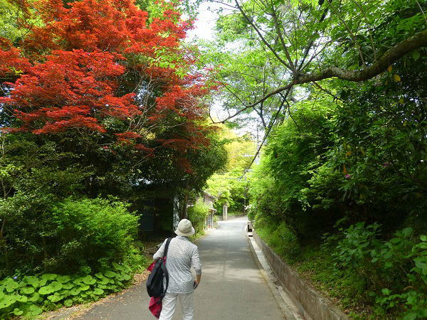 瑞泉寺山門脇の道を進んで鎌倉宮へ向かう。 |