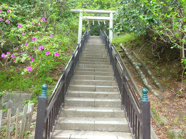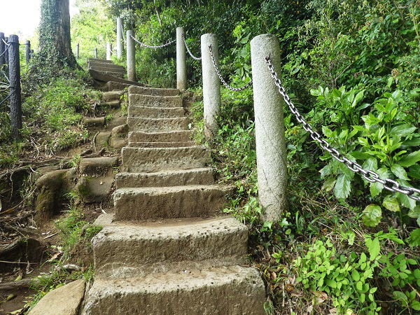 いよいよ、名物天園ハイキングコースの長い石段が始まる。 このコースで一番きつい登り。 |