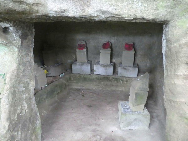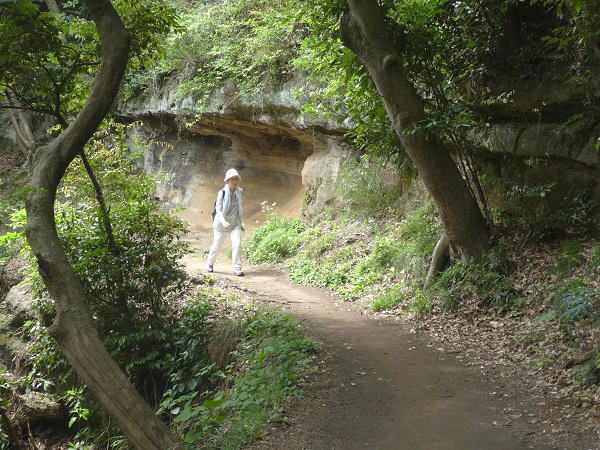 ![]() ハイキングコースには幾つもの"やぐら"(横穴式供養堂)がある |