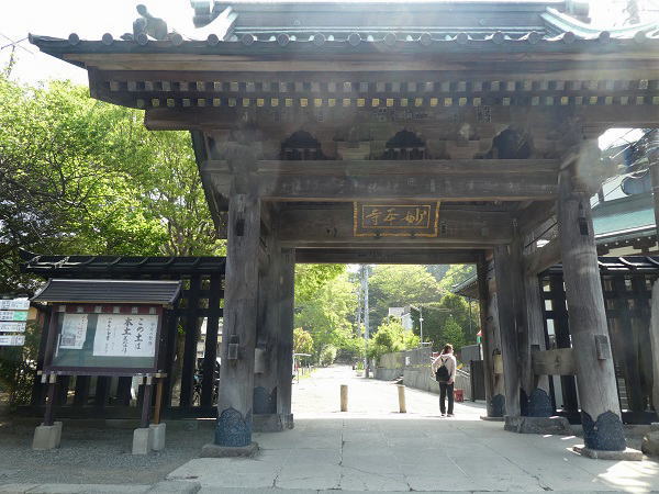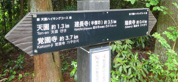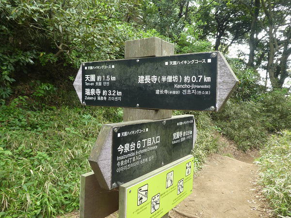 天園ハイキングコース入口は建長寺境内の奥で、山門をこぐり拝観料500円を支払い境内へ。参拝しながら進む。 |