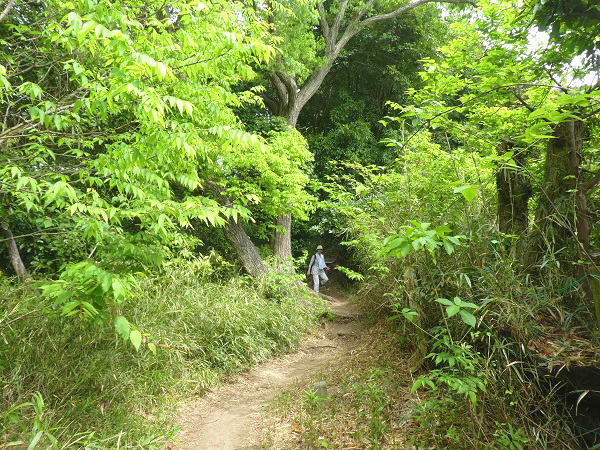 半増坊道と書かれた小径に入る。ここからが天園ハイキングコースだ。 |