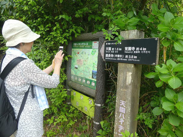 天園ハイキングコース勝上献分岐。外人さんのハイカーが多いのにびっくり。 |
