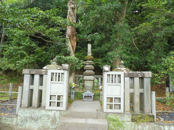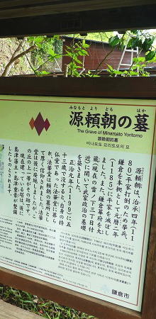 「源頼朝公」は建久10年(1199)1月13日に53歳で亡くなり、法華堂(白旗神社)に葬むられた。現在の墓は白旗神社の横の階段を登った所にあり、江戸時代に島津氏によって建てられた。墓のあるあたりに、かつては頼朝の持仏堂があり、頼朝の死後は法華堂と呼ばれた。墓の層塔は1779(安永8)年大御堂から移された。 |