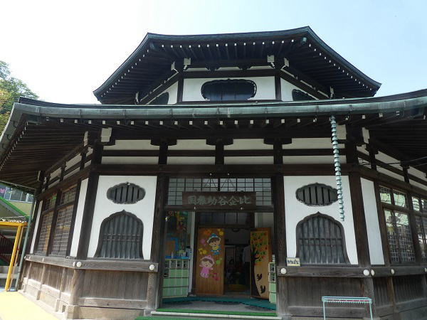 ①本覚寺から妙法寺へのみちすがら、珍しい建物「比企谷幼稚園」で、妙法寺の支院の境内に、昭和12年3月八角形の夢殿を模して建てられた。 |