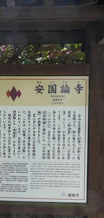 大仏殿から観光客の流れに沿って長谷寺方面に歩きその近くの光則寺へ。 日蓮上人が「立正安国論」を時頼に建白した場所だ。 |