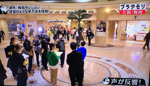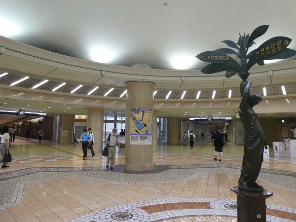 昨日と同じホテル近くのM14入口から梅田地下街「ホワイティうめだ」泉の広場から散策開始。 |