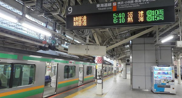 熱海駅から東京は混雑しているので、快速電車用グリーン券(\1000)利用して16:06発~17:53分東京駅着で帰る。 |