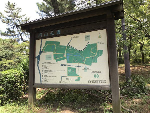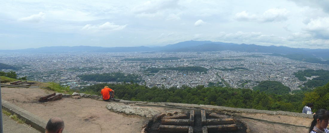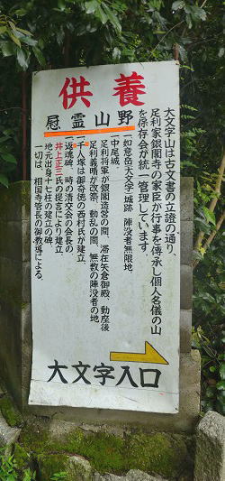 | 大文字火床まではそれほどの山でなかったが、37℃の暑さの中、スタミナを相当使い疲労困憊。軽い熱中症のように歩くのもつらい状態でやっと銀閣寺下へ戻ってくる。 |
