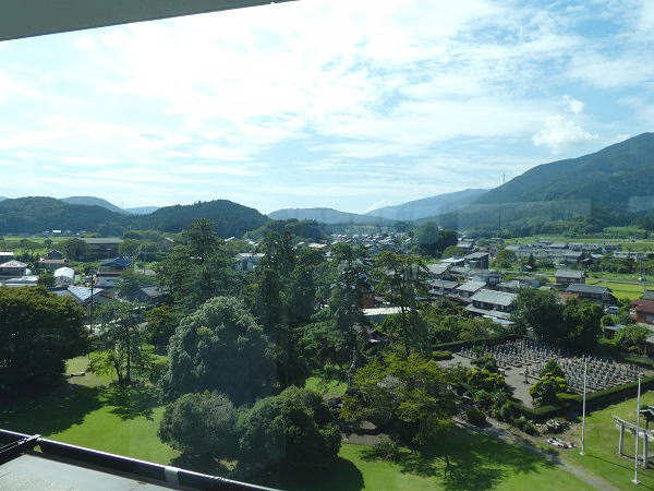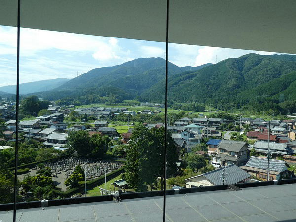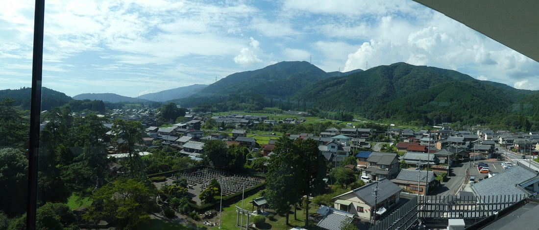 2023年8月24日 曇り晴れ 早朝お風呂に入って、8時~二階のレストラン"山のかまど"で朝食。10 時~ホテルにお願いしておいたマイクロバスで、お寺までは1往復16㌔もあるが送ってもらえた。 |