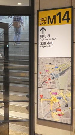 太融寺をお参りして、扇町通りを左に折れると直ぐ、梅田地下街「ホワイティうめだ」への M14入口から入る。 |