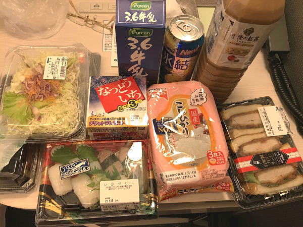 明日は台風直撃ホテルに籠るため、大丸地下の「加悦」であなごの太巻きや途中のスーパーで野菜など2日間分の食料品を調達してホテルに向かう。 |