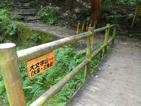 十字のこの部分は送り火で灯される「大」の字の「一」と「人」が交差する。 「大」の1画目80m、2画目160m、3画目120mで三辺の火床の数は全部で75基。 「大」の文字の画が交わる中心点「金尾」は、火床が特に大きく作られている。 |