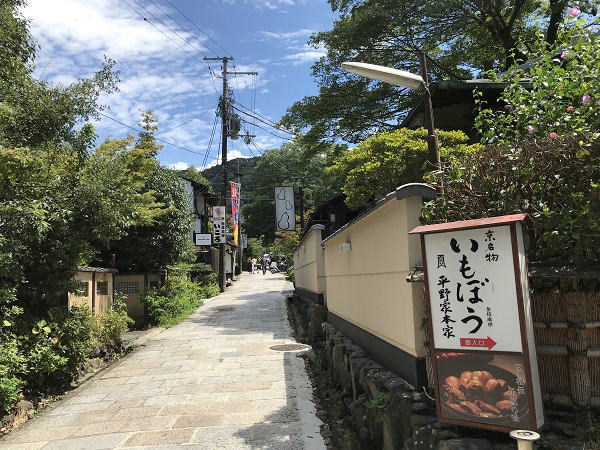 京都料理「いもぼう」相撲茶屋「いころ」が並んで立つ通りを進む。 |