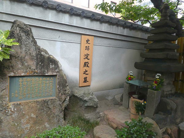 境内を廻り歩いていると、西北隅っこに 「淀殿の墓」え!!。 かの 信長の姪、浅井三姉妹の長女・お茶々、後の秀吉の側室、大阪夏の陣で波乱の生涯を終えたあの、淀君の墓。 それにしてはあまりに簡素すぎるのでは...墓碑には、明治10年、城東練兵場(現・大阪城公園)の造成にともなって太融寺に移された、と説明されている。 |